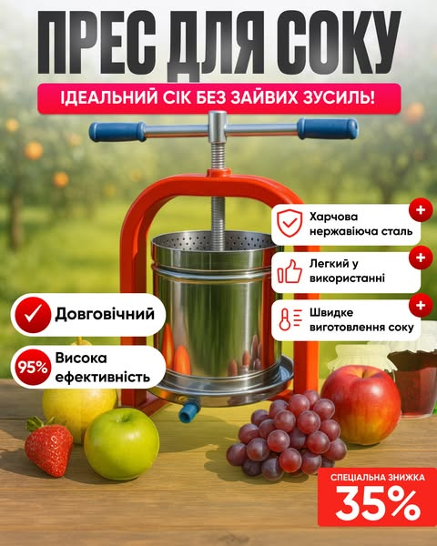 Купив цей прес для батьків — тепер вони щасливі, як діти. Легкий у догляді, нічого не іржавіє, працює плавно. За ці гроші — просто супер! Вже другий сезон користуємось — і ні єдиної проблеми.